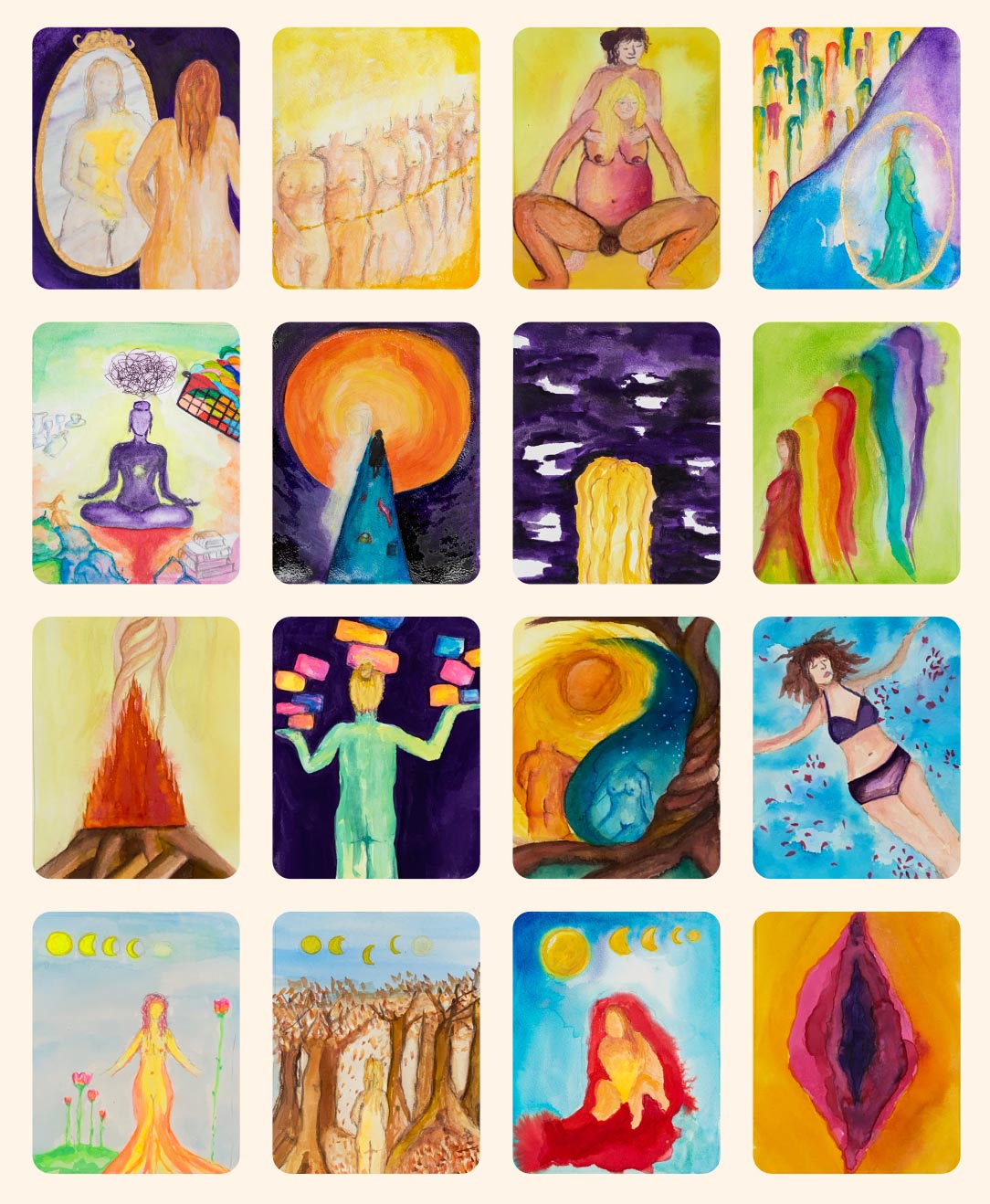 Auf der Suche nach einer Künstlerin, die genau dieses Gefühl in ihrer Arbeit trägt, fand sie in Marina Gundlach die perfekte Partnerin. Jede Karte dieses Sets wurde von ihr liebevoll von Hand gemalt und ist in Resonanz mit der jeweiligen Energie zum Thema entstanden.